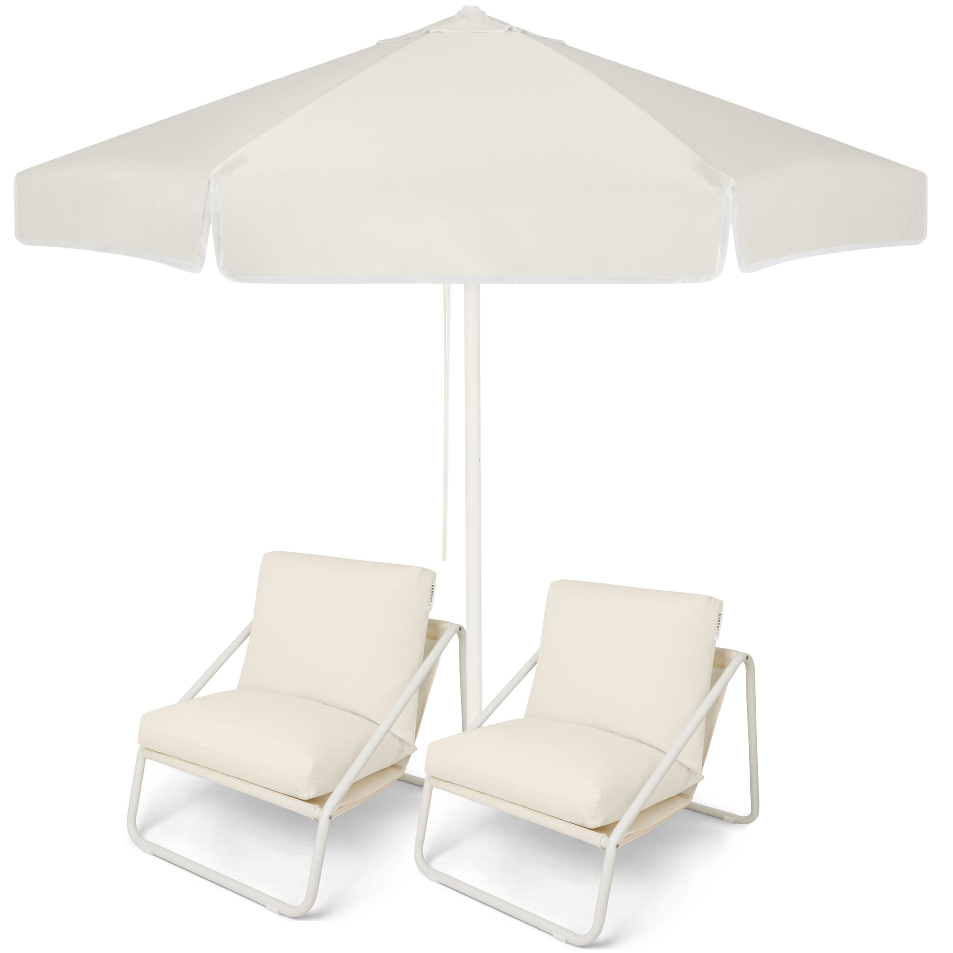 Inspired by sun-warmed sand and natural textures, the Dunes Market Umbrella and Outdoor Chair Set brings a calm, grounded feel to your outdoor space. Soft, neutral tones make this bundle endlessly versatile—designed to blend seamlessly into beachside, poolside, or backyard settings.
